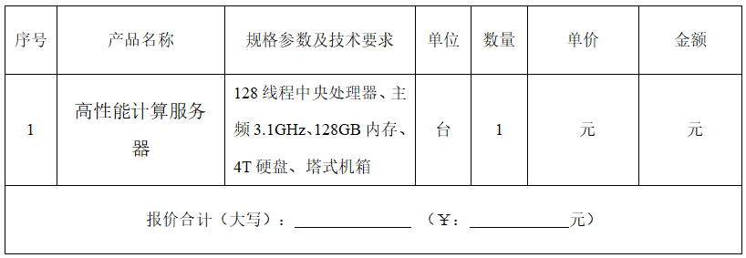 询价内容: 高性能计算服务器